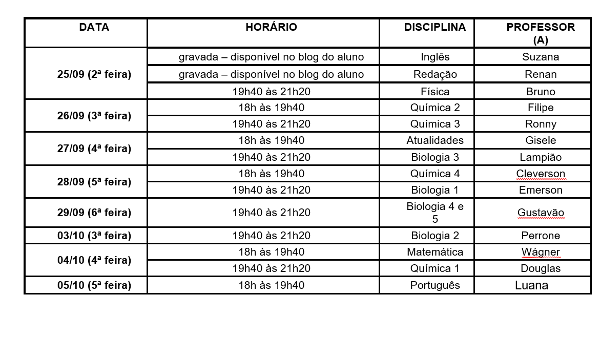 Entre os dias 25 de setembro e 05 de outubro de 2023, ofereceremos uma revisão especial para os vestibulares de Medicina particulares para 2024/1. As aulas serão presenciais na unidade de Vitória com transmissão ao vivo (online) pela Plataforma Microsoft Teams. Confira a programação: