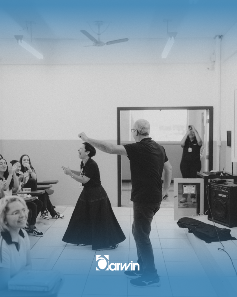 Nas últimas semanas, os alunos das unidades de Vitória e Vila Velha participaram de mais uma edição do projeto, que reúne música, interação e leveza no ambiente escolar. No palco, os professores Douglas Dutra e Rondinelli conduzem o momento, que também abre espaço para a participação dos alunos que desejam compartilhar seus talentos.