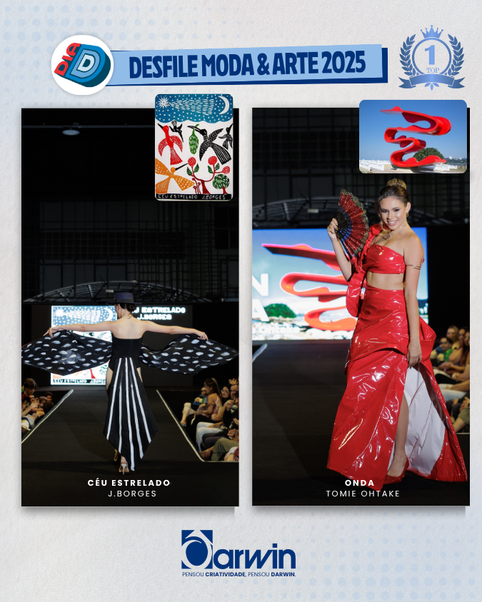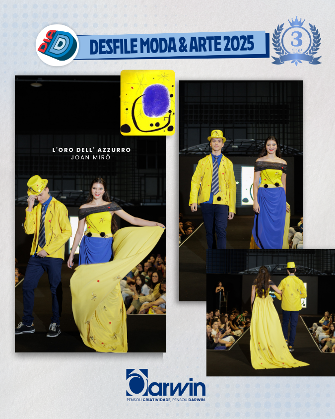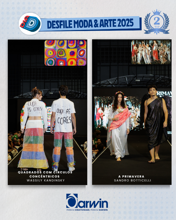 Encerrando o dia com criatividade e expressão artística, os alunos da 1ª série do Ensino Médio apresentaram o desfile do Projeto Moda/Arte, inspirado nos movimentos artísticos estudados ao longo do ano.